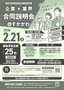 2025年12月4日に、須賀川市オープンカンパニー事業「すかがわTECツアーズ」の2日目が開催されました。 「すかがわTECツアーズ」は須賀川市周辺の企業がものづくりやサービスの現場を公開し情 […]