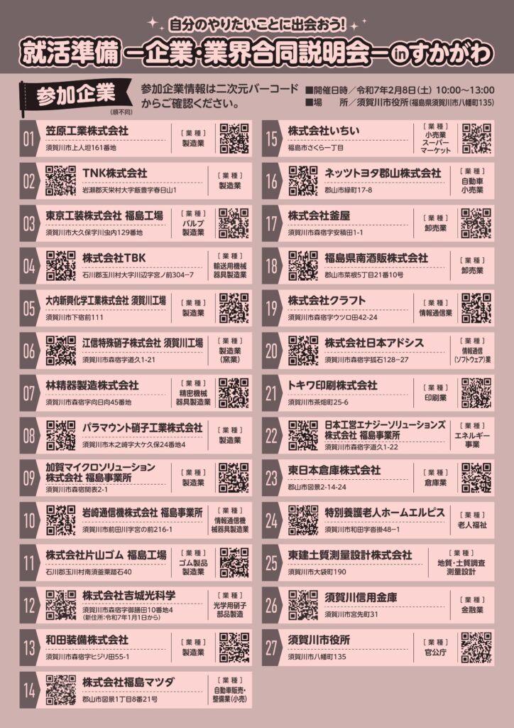 須賀川市や福島県内での就職をお考えの方は、ぜひお気軽にご参加ください。