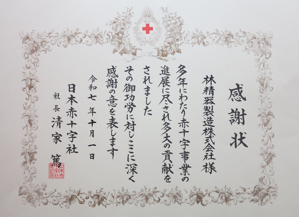 2025年10月15日に開催された「献血団体並びに献血推進団体表彰式」にて、林精器が表彰を受けました。