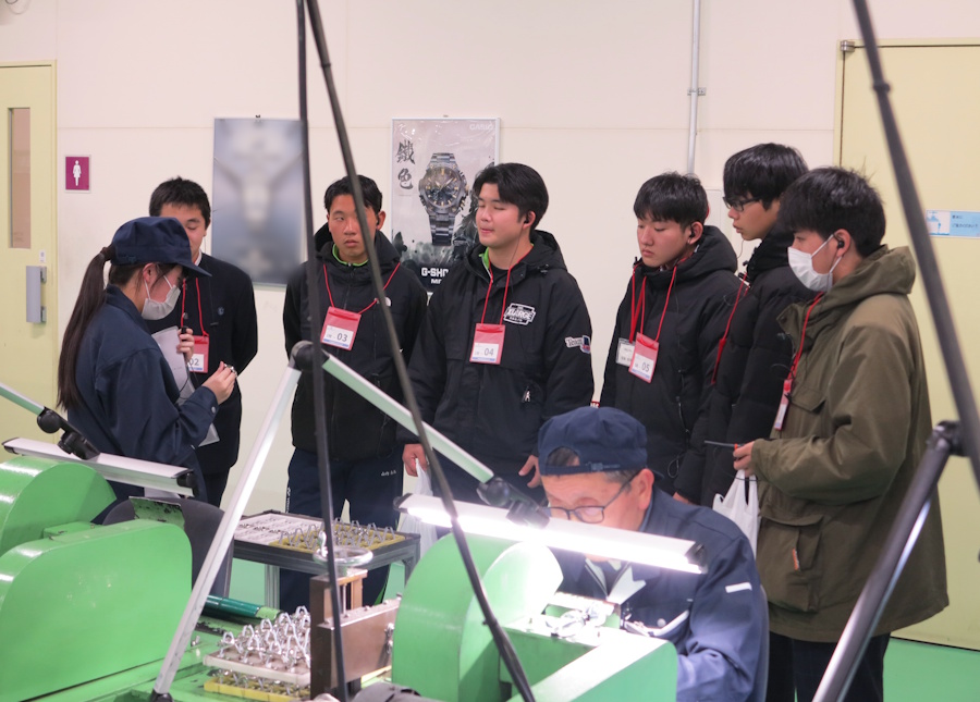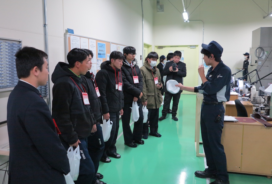 林精器では若手社員を中心に、各職場の説明や実演、体験を交えながら仕事の内容を紹介しました。